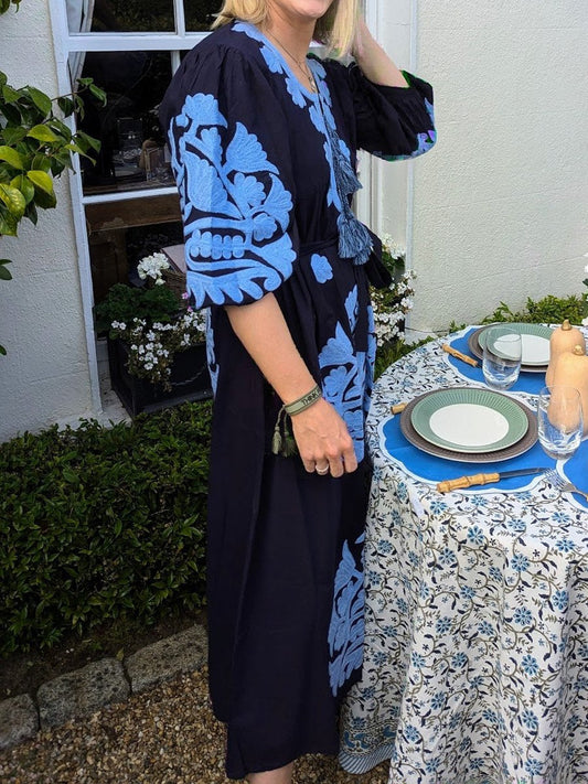 Sold outEMBROIDERED LINEN BLEND DRESS