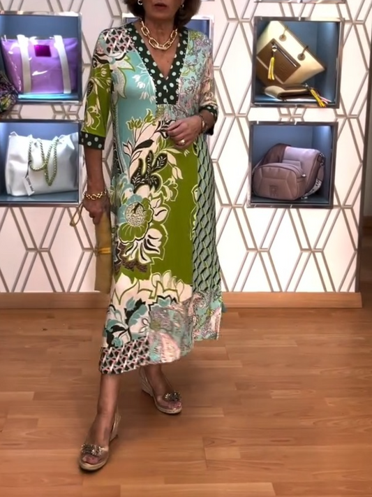 Sold outVintage Printed V-neck Midi Dress