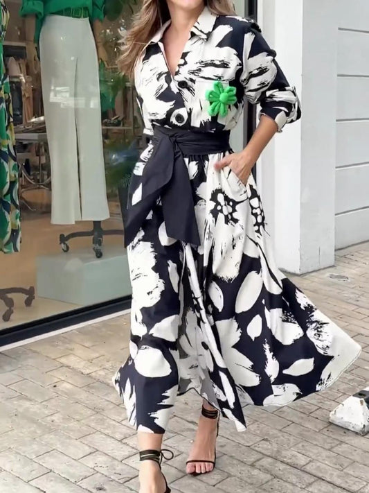 Long Sleeve Elegant Printed Maxi Dress
