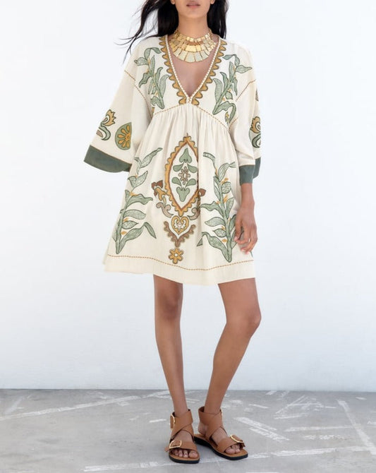 Sold outEMBROIDERED LINEN BLEND DRESS