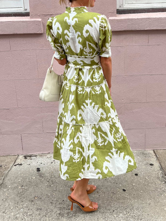 Sold outDeep V Neck Ruffe Printed Mini Dress