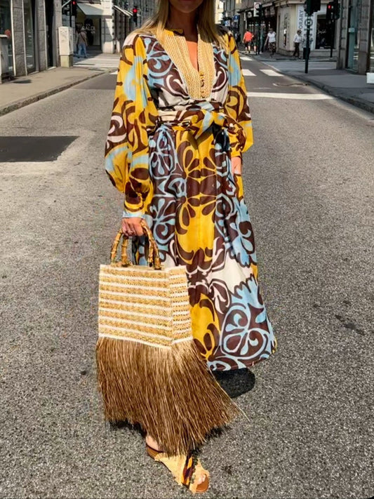 Sold outPrinted Long Sleeve Loose Maxi Dress