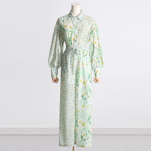 Maxi Linen Dress Set & Shirt, Long Sleeves, Shawl Collar, Plain, Button Design, French Vintage, Light Brown