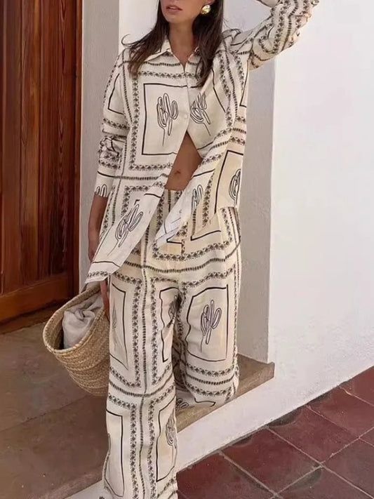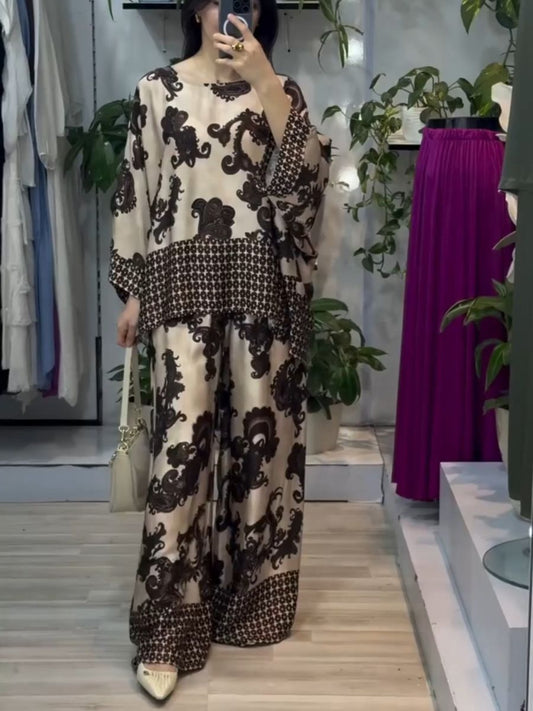 (⏰New Arrivals Promotion $15 OFF) Airy Printed Top And Pants Two Piece Set