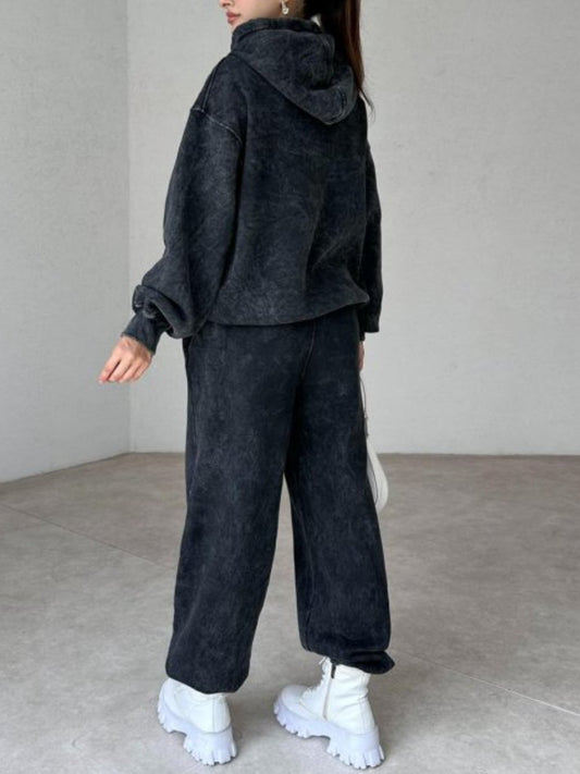 Stylish Retro Loose Hoodie Sports Two-Piece Set