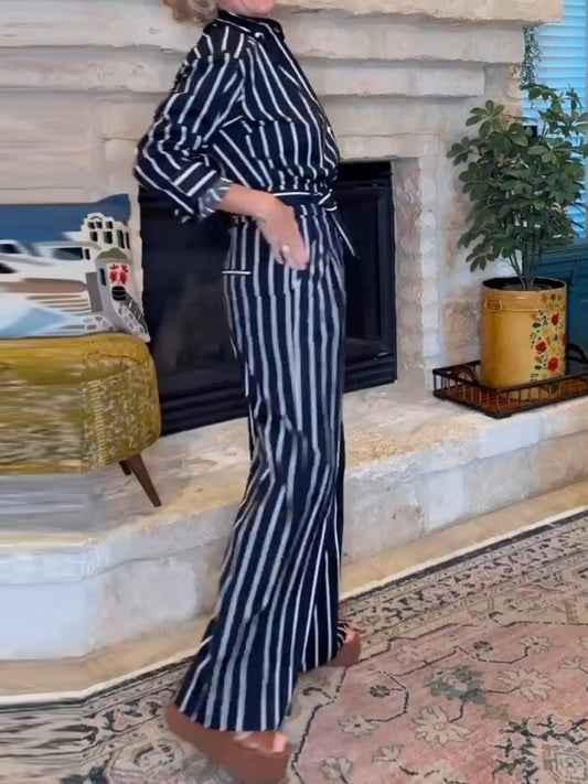 Elegant Loose Fashion Casual Color Block Women's Two-piece Set