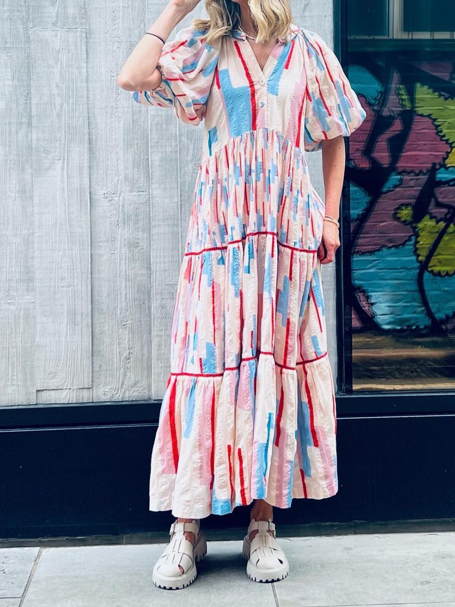 The dress is cut from 100% cotton fabric and features a button up front, tiered skirt and lace detailing. Pair with your fave sandals for a casual look, or wear with heels for a more formal occasion. Hand interlacement detailing adds a bit of interest to this casual piece.