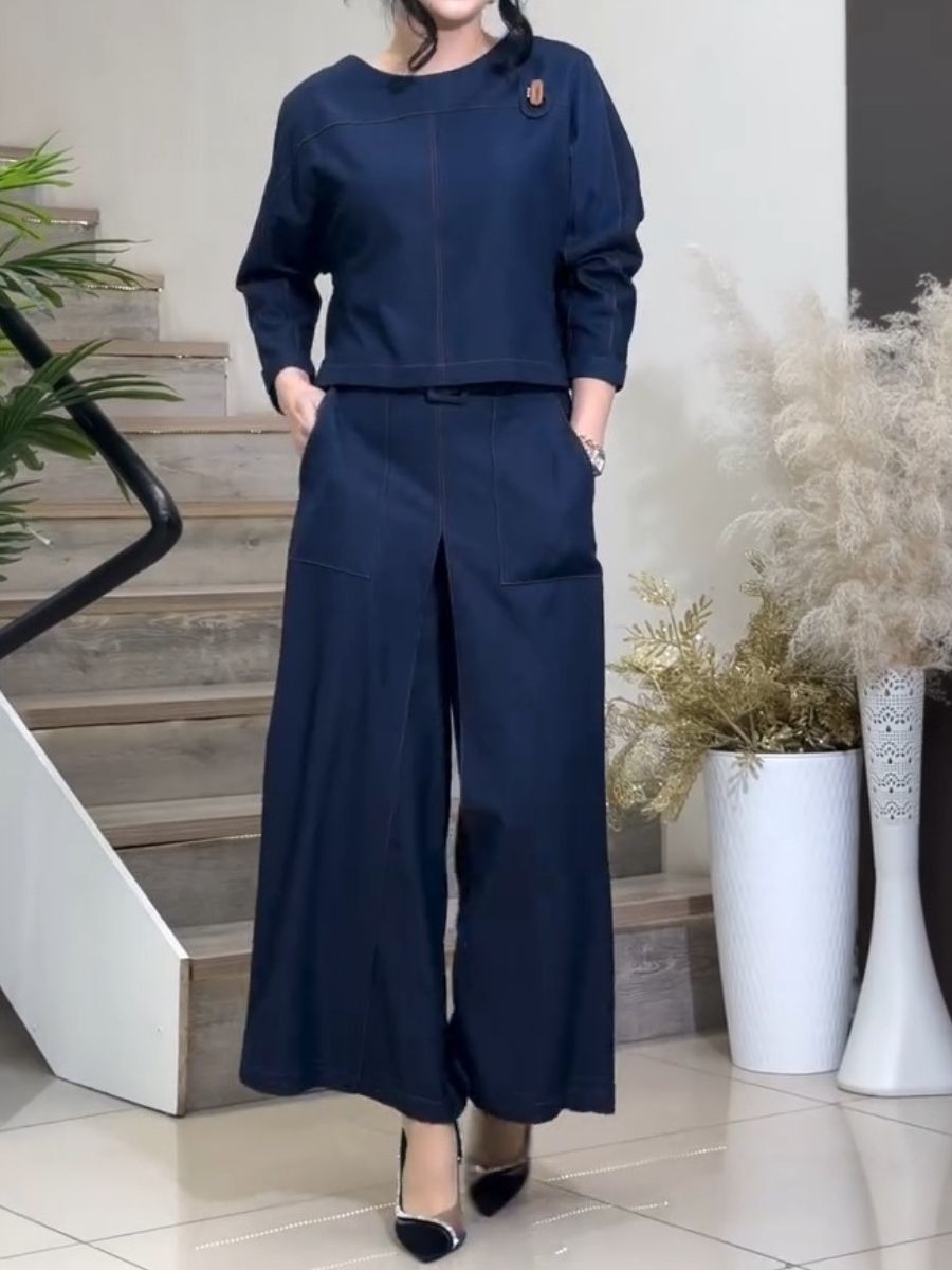 (⏰New Arrivals Promotion 40% OFF) Cotton Long-sleeve Top And Wide-leg Trousers Set