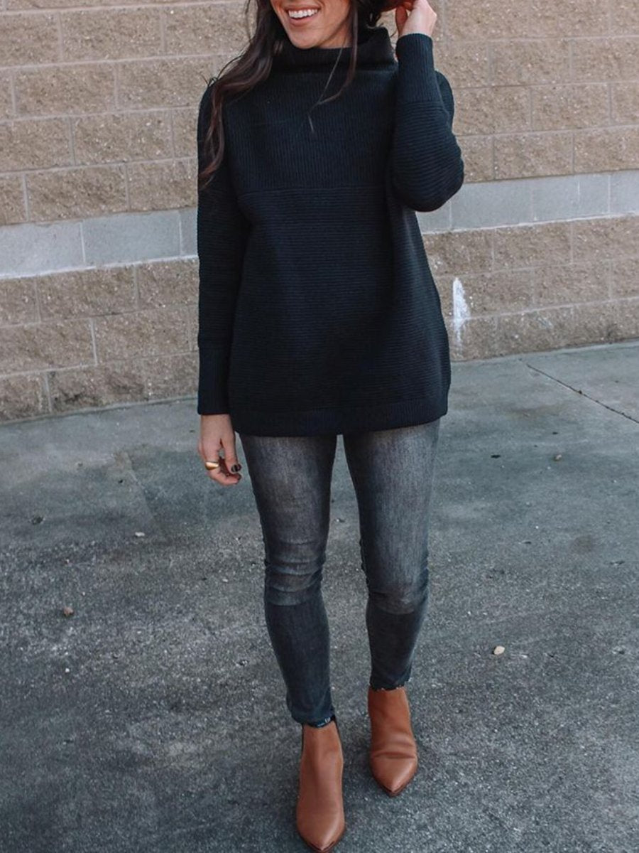 Cozy Ribbed Turtleneck Black Sweater