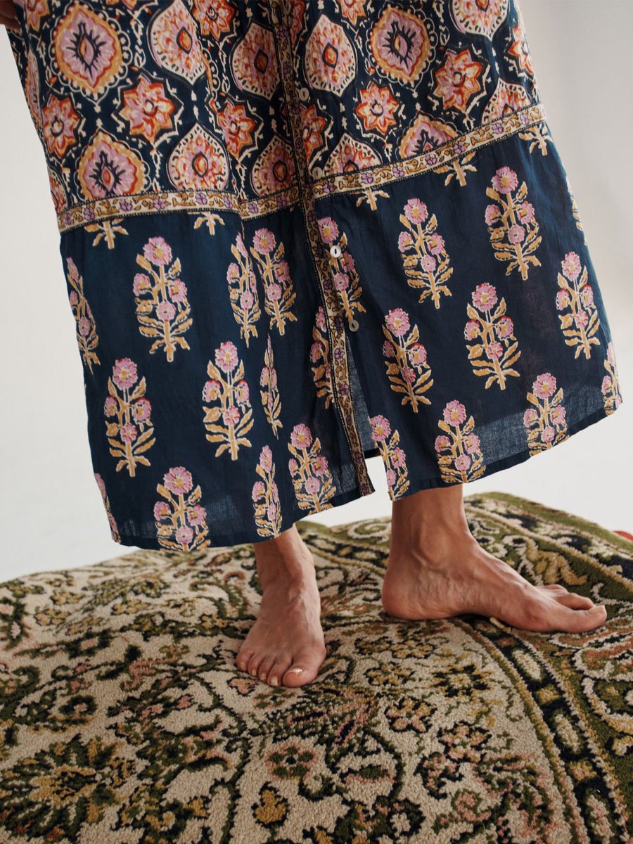 Elegant Balloon Sleeve Belt Contrasting Print Dress