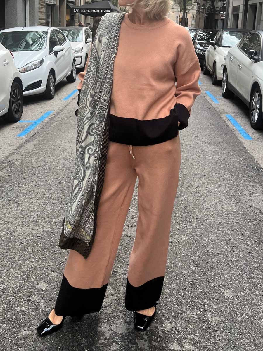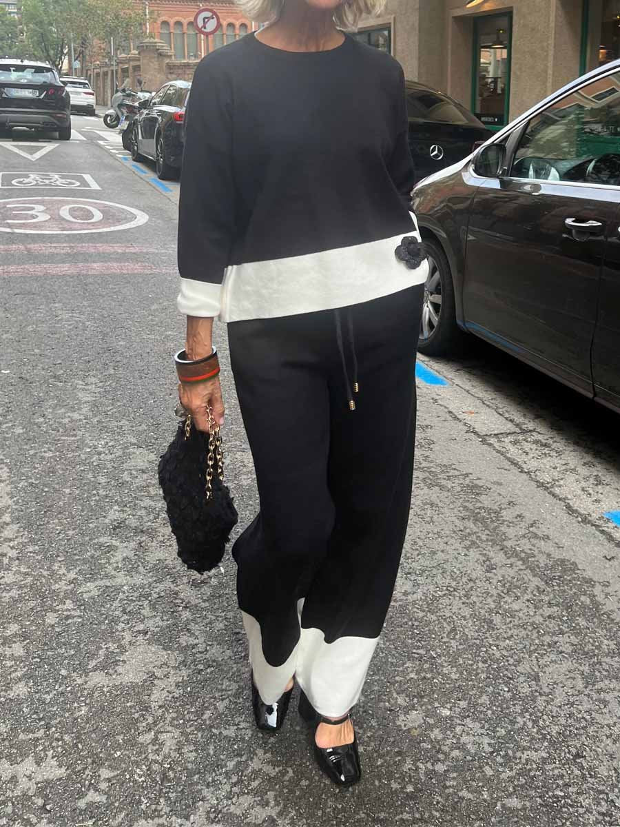 Elegant Loose Fashion Casual Color Block Women's Two-piece Set