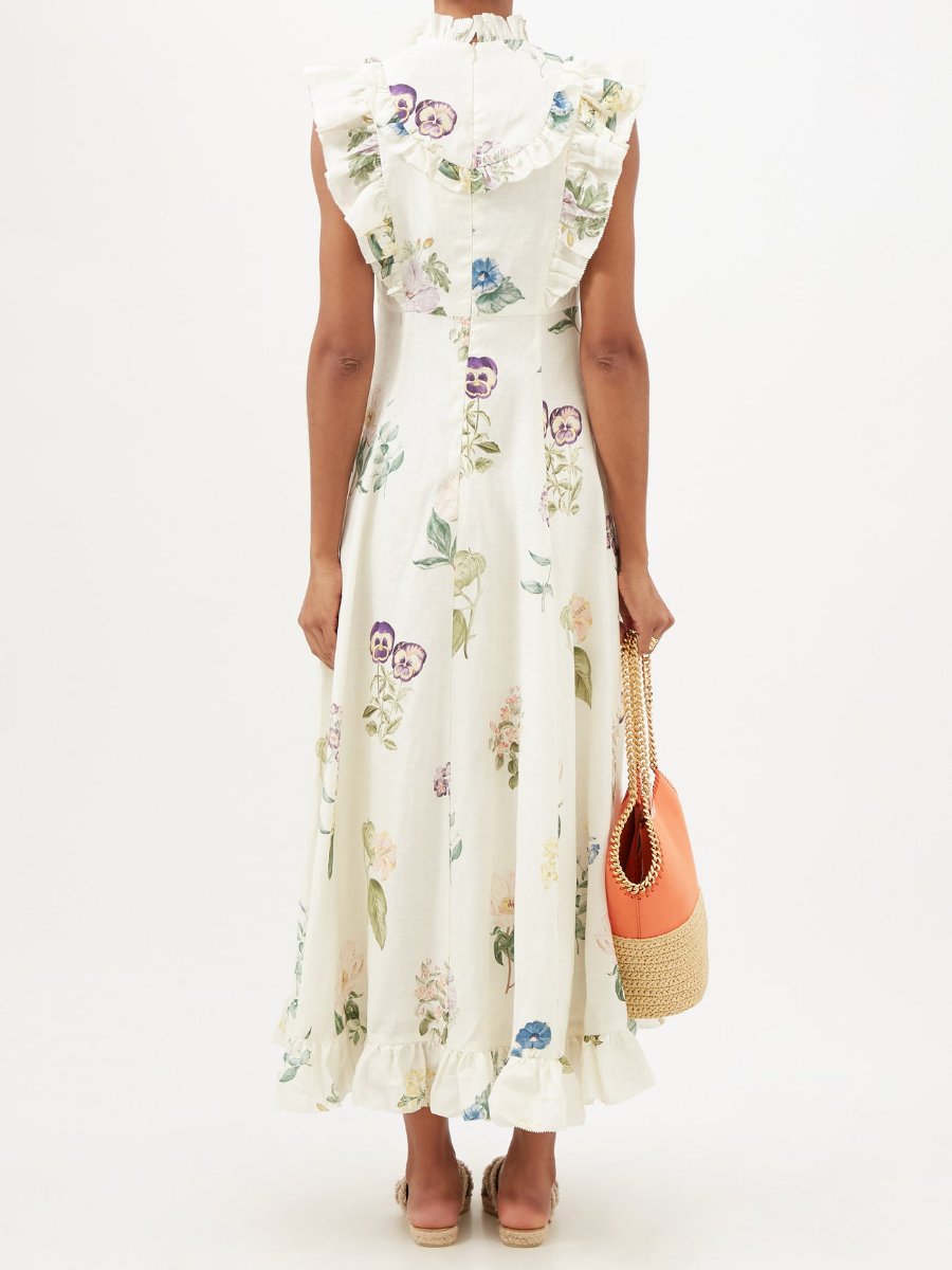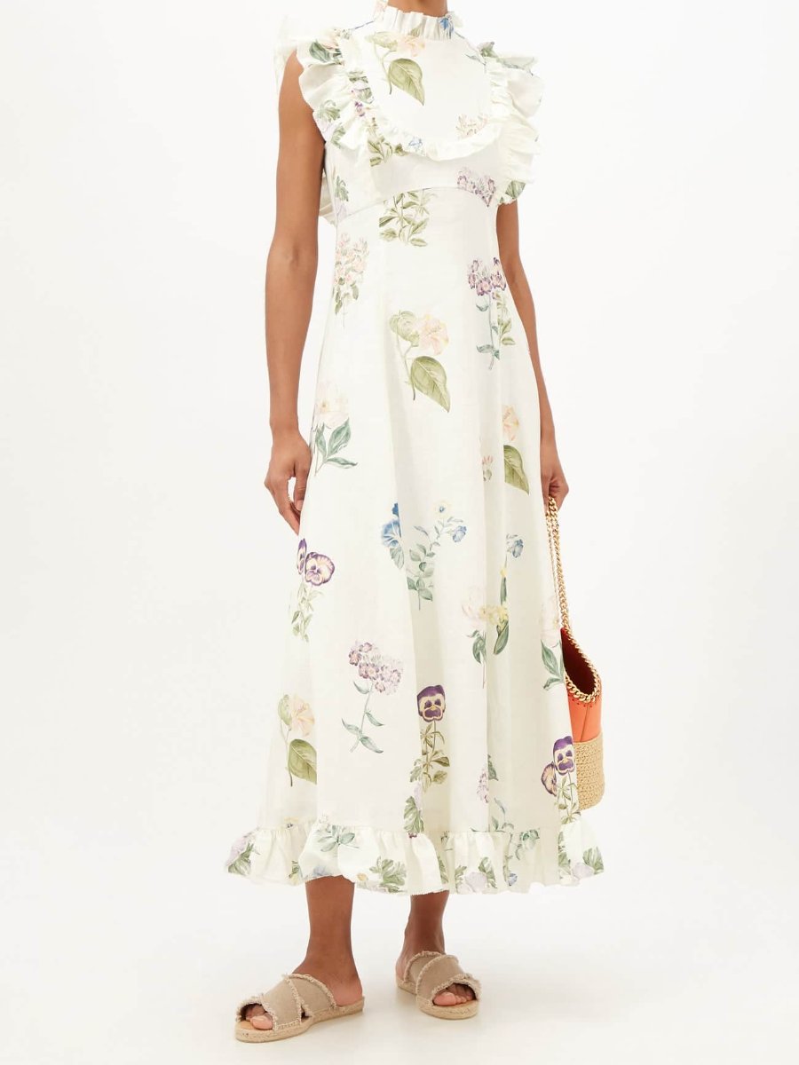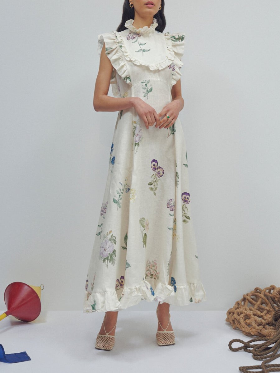 The stunning dress features everything you have ever wanted, with a gorgeous mock neck followed by a ruffled yoke and adorable ruffled capped sleeves to amplify the look, followed by the fluted midi hem and the back zip to accentuate the look, completed with an ivory color embellished with the gorgeous prints to amp up the game, made with fine quality cotton fabric to add comfort to your style.