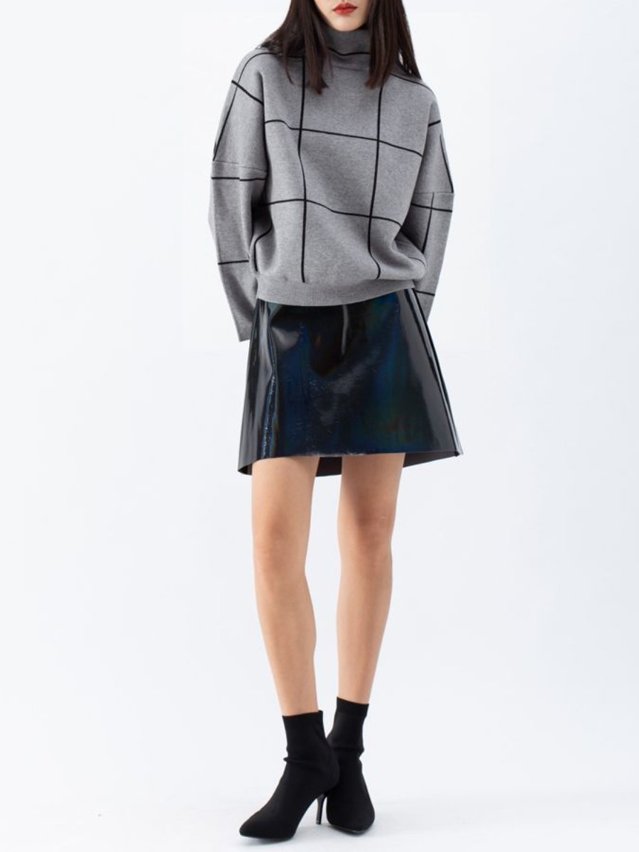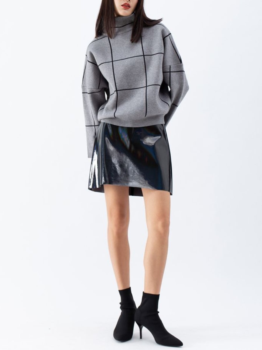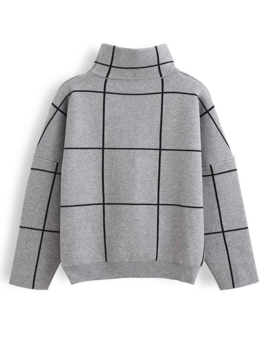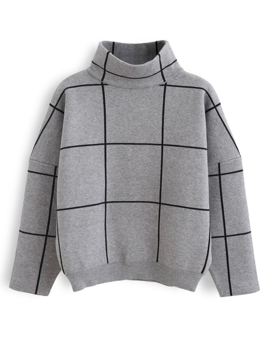 Grid Turtleneck Sweater In Grey