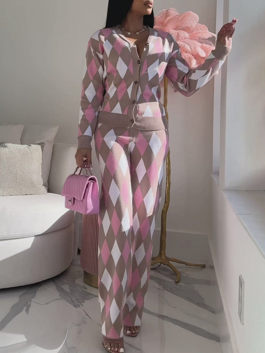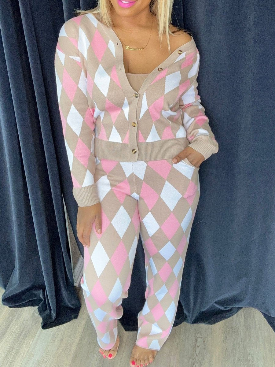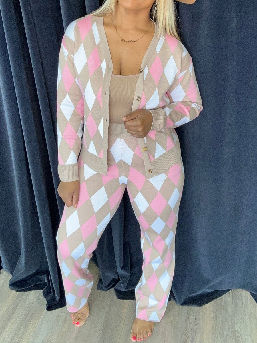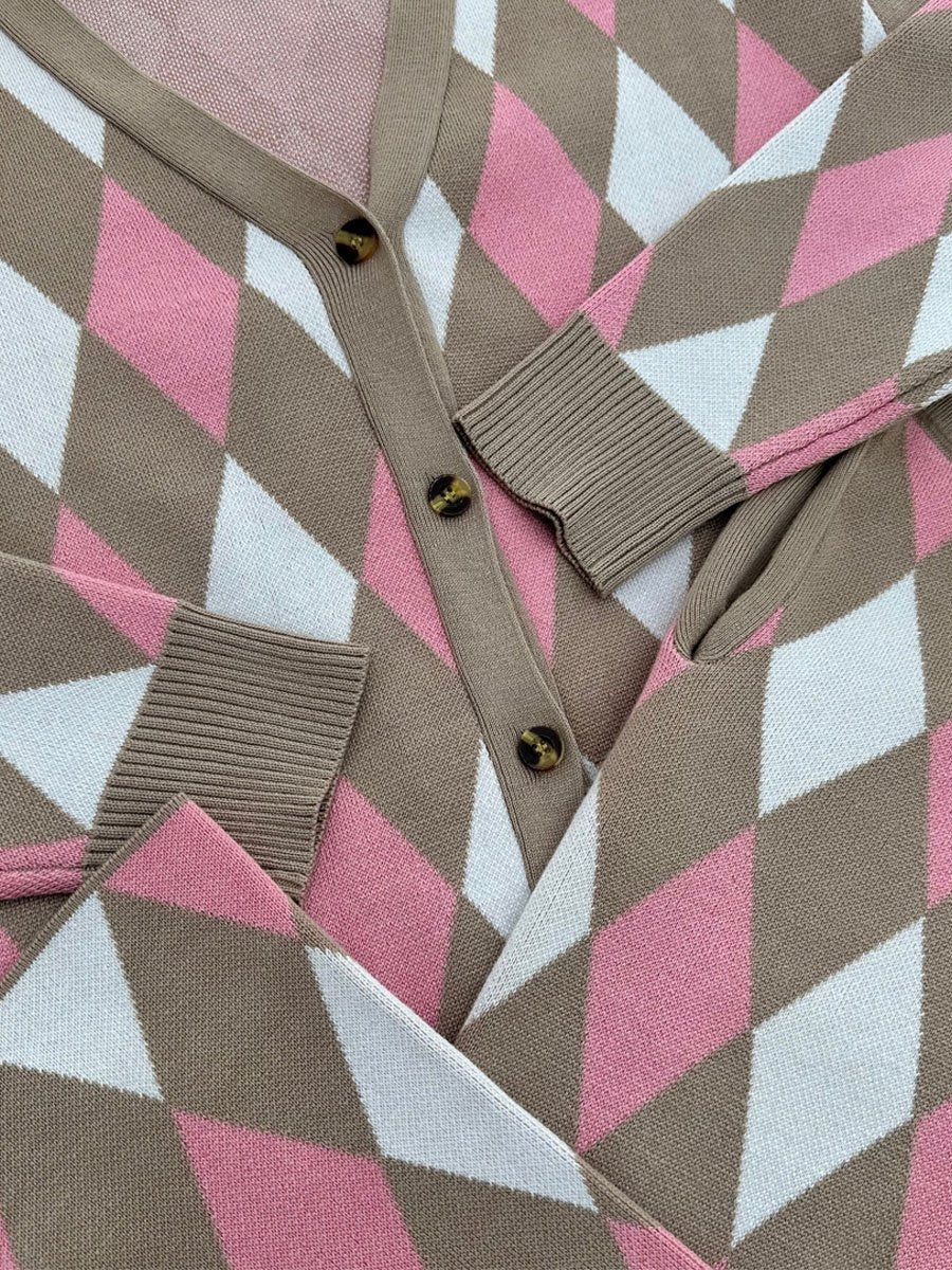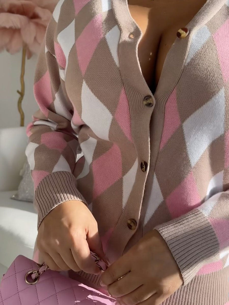 Knitted Sweater Rhombus Cardigan Two Piece Sets