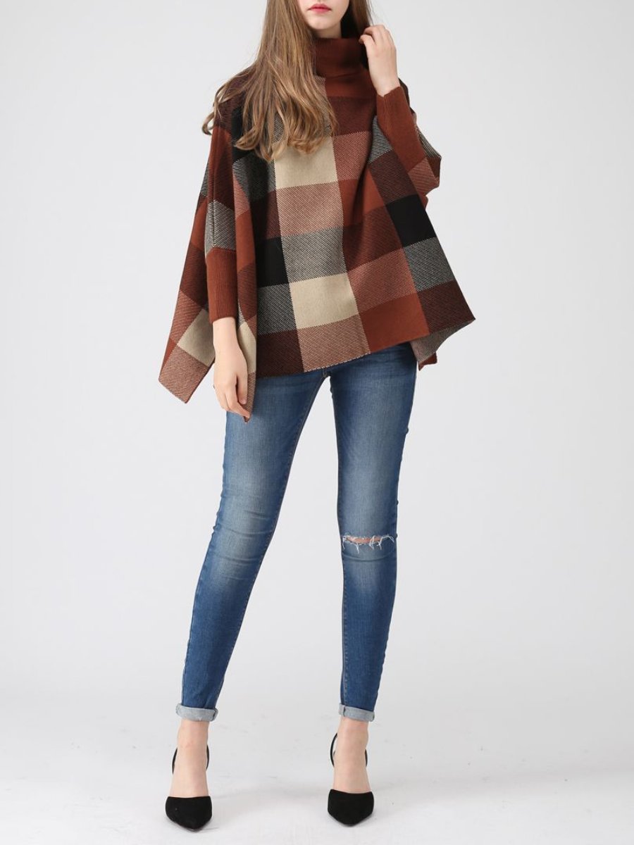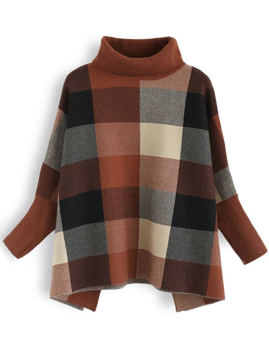 Lie In Check Fields Turtleneck Cape Caramel Sweater
