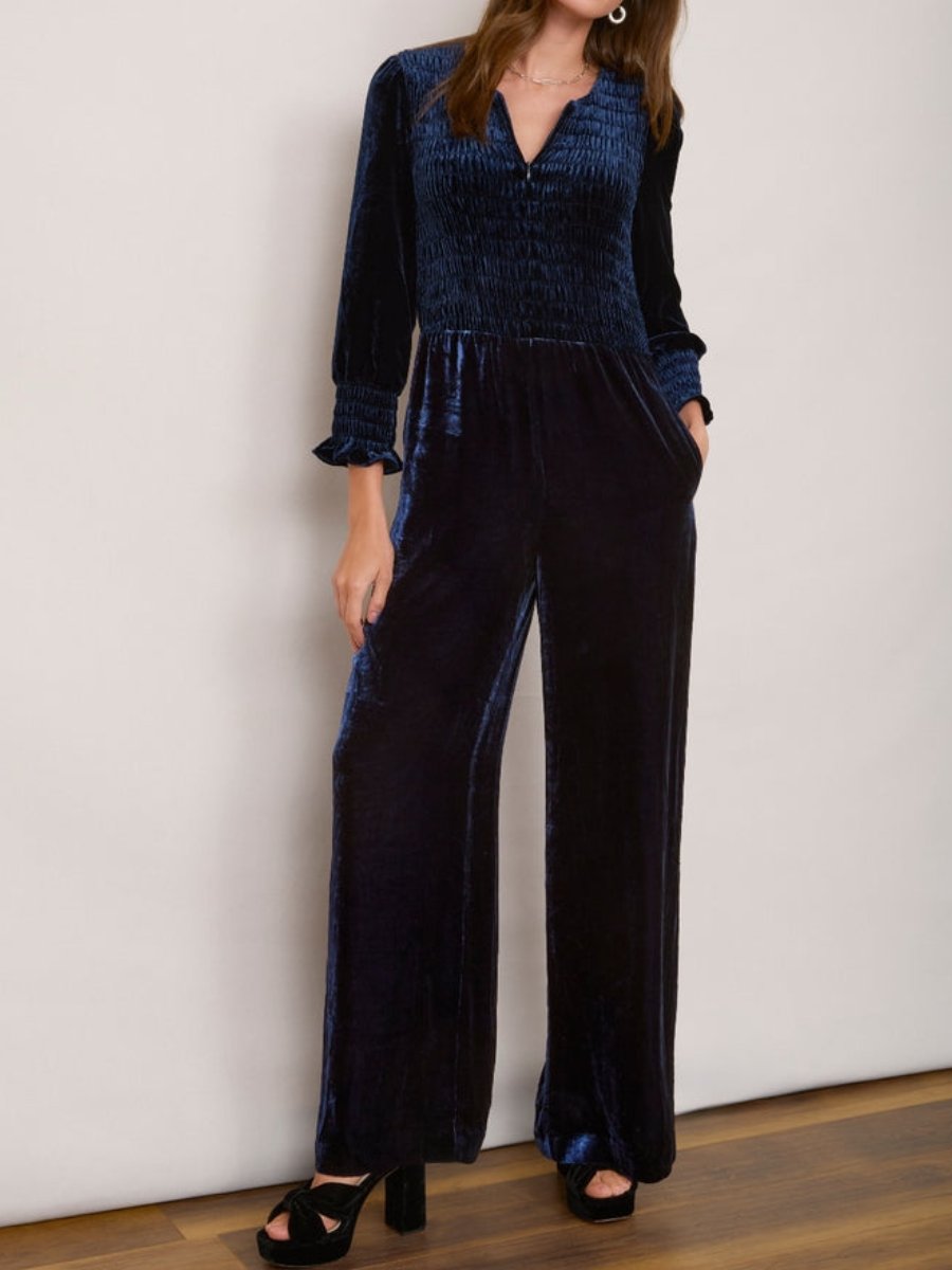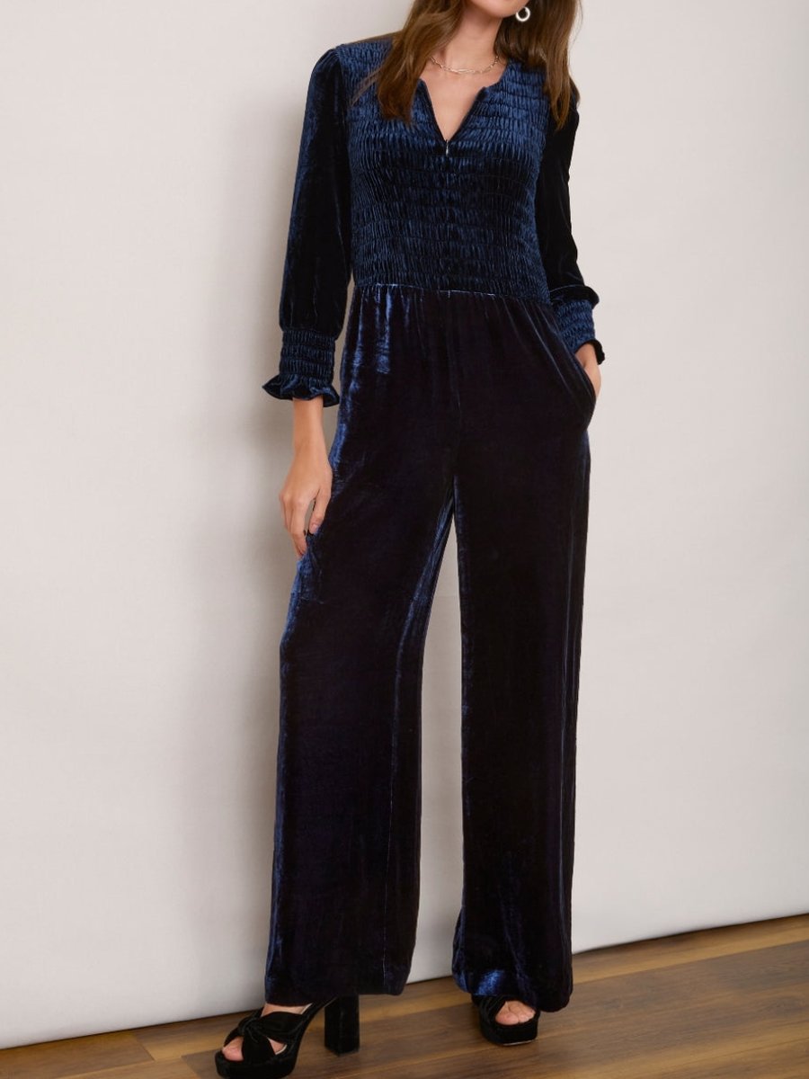 Indulge in luxury with our Midnight Silk Velvet Jumpsuit. The exquisite fabric and intricate design exude elegance and opulence. Elevate your style with this stunning piece, perfect for any special occasion. Made with 100% pure silk, this jumpsuit offers both comfort and style.