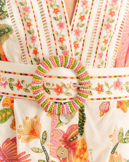 This is what we call an effortless Summer style. The Off-White Organic Cotton Romper is the fresh match for all your solar plans with its one-of-a-kind print, a plunging neckline, a belt with a beaded buckle, and the coolest length to show some legs and bold shoes. Isn’t it the sun-filled one piece your wardrobe was missing?