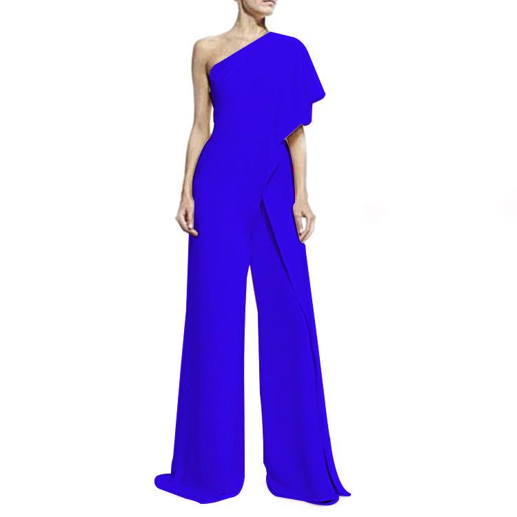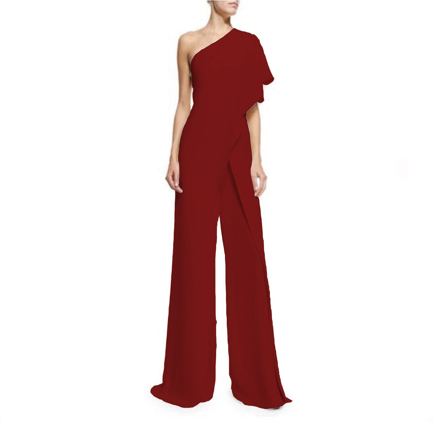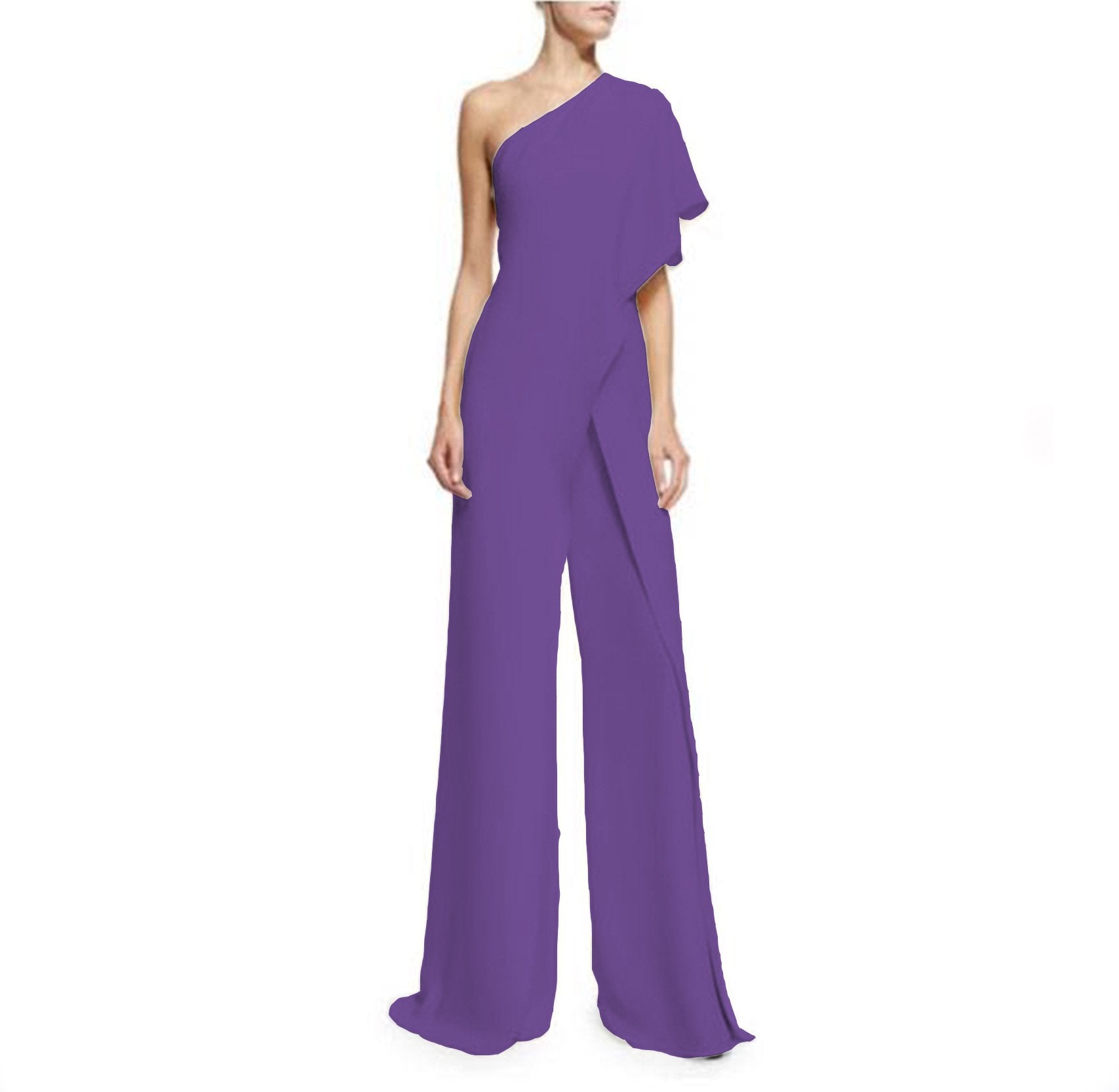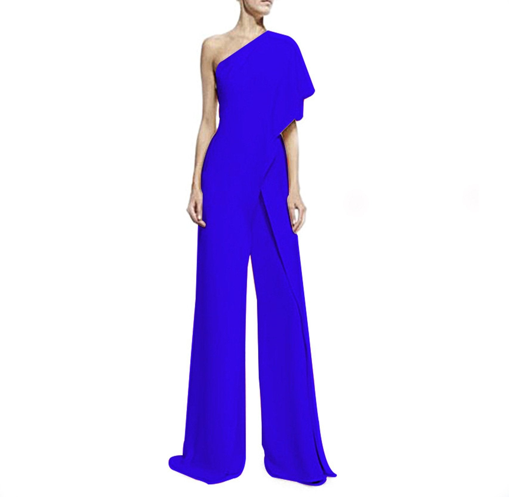 Expertly crafted to make a statement, this one-shoulder jumpsuit features a chic shawl sleeve design that exudes elegance and sophistication. Made with high-quality materials, this jumpsuit is both comfortable and stylish, making it the perfect choice for any occasion. Upgrade your wardrobe with this versatile and fashion-forward piece.
