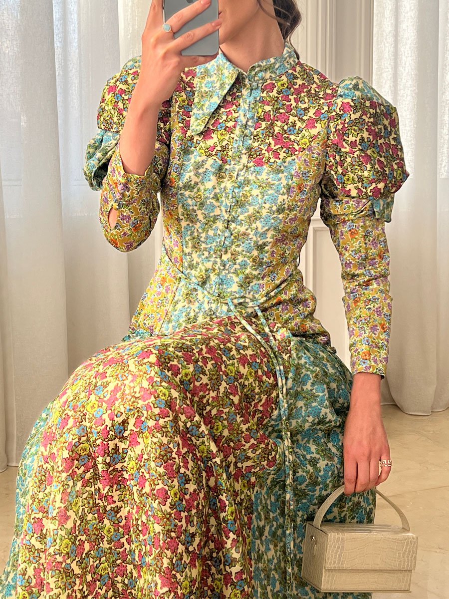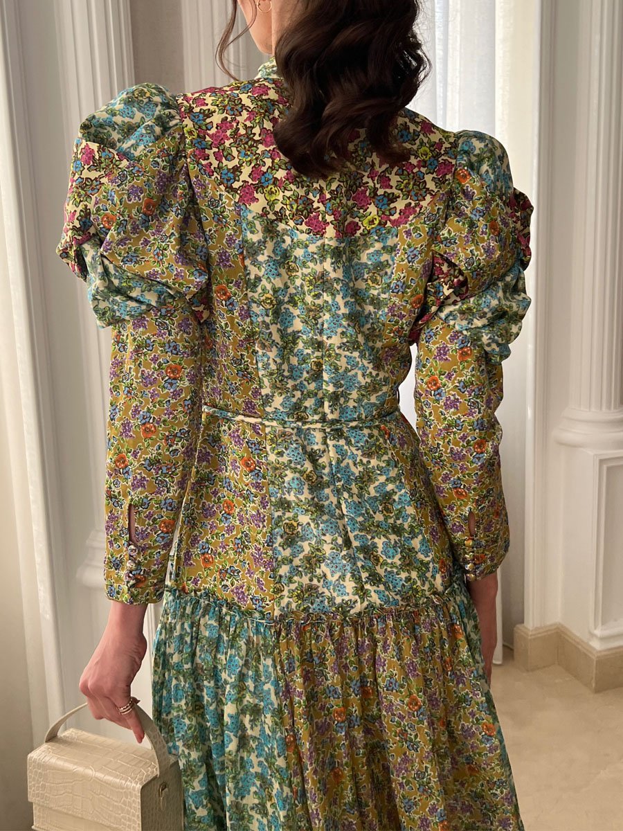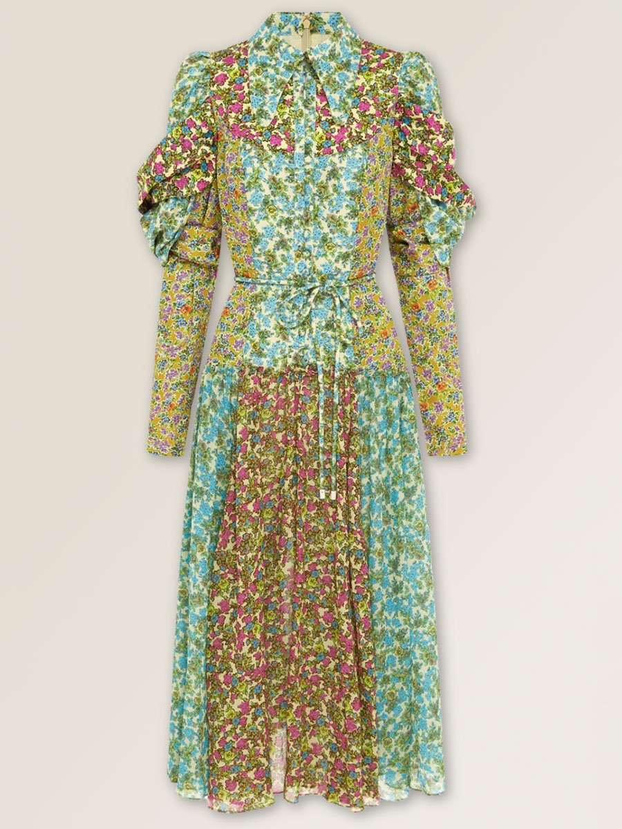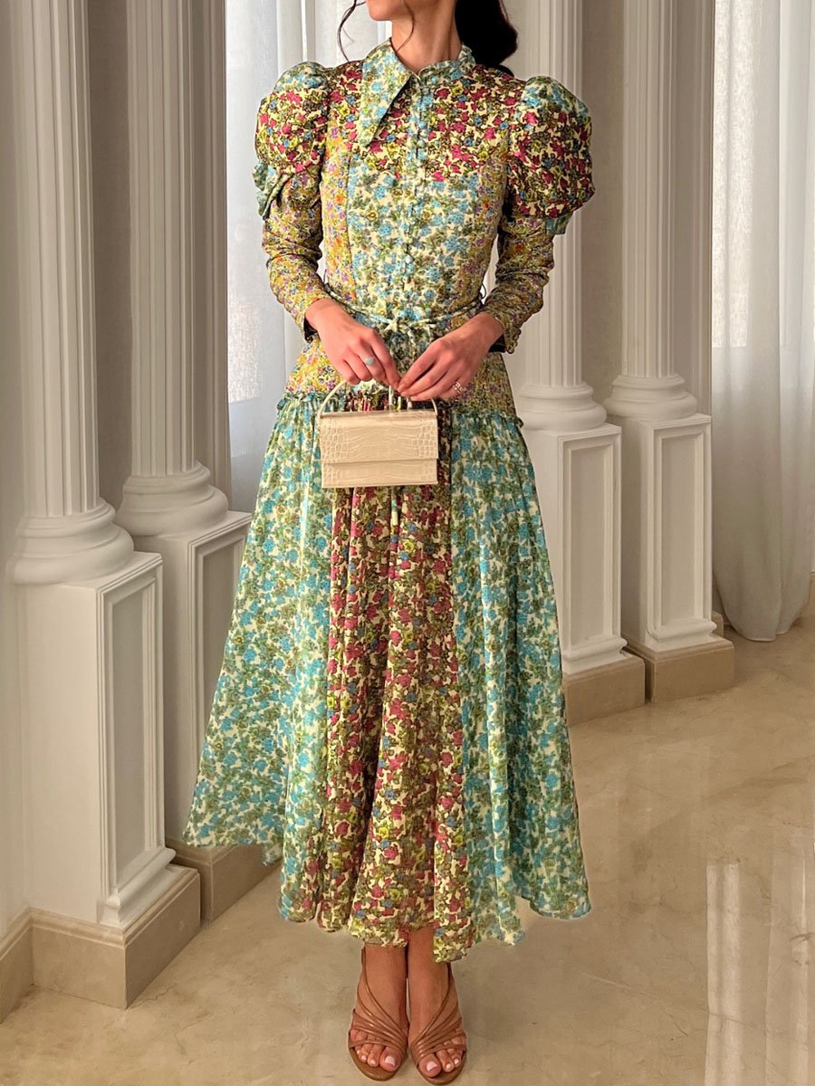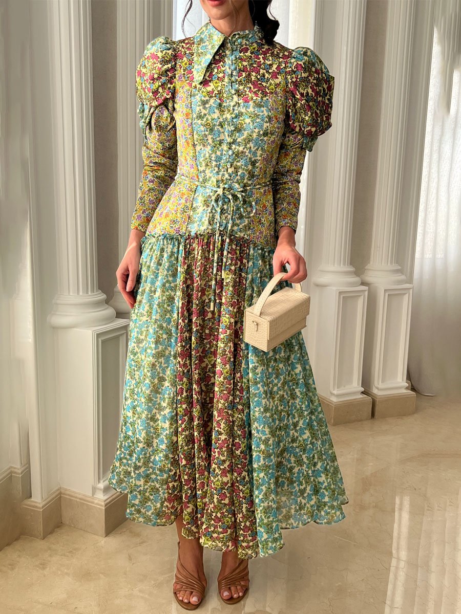 Puff Sleeve Printed Tie Up Shirtdress