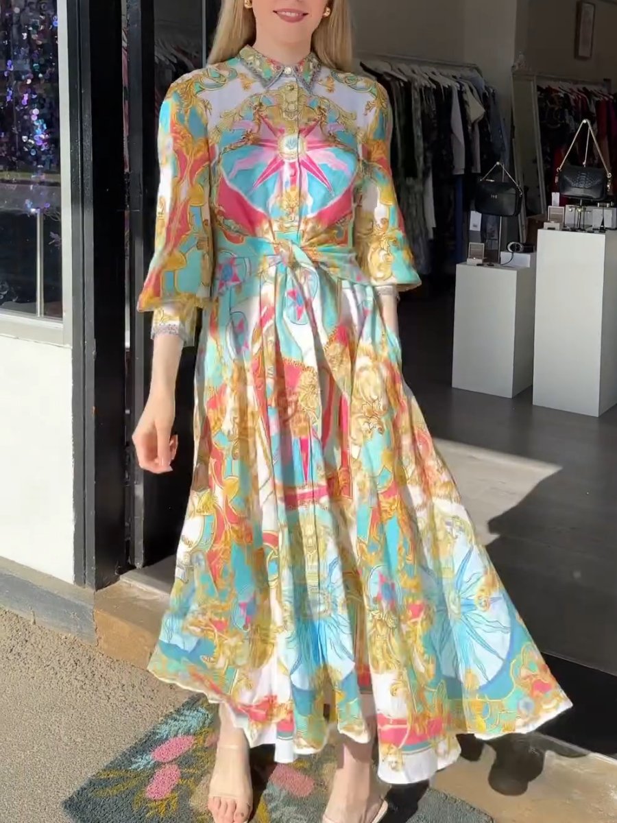 The Dress embodies a colourful seascape of nautical notes and gilded treasures. Make a bold statement with our stunning full-length linen shirt dress. This dress showcases a waist tie detail that offers versatile styling options – wear it at the front for a defined silhouette or at the back for a more relaxed look. The button-through enclosure adds a eternal touch to the design, while the shirred detail cinches the waist. Immerse yourself in the elegance of this shirt dress, crafted with meticulous attention to detail and designed to make a lasting impression. Lovingly handcrafted, designed in Australia.