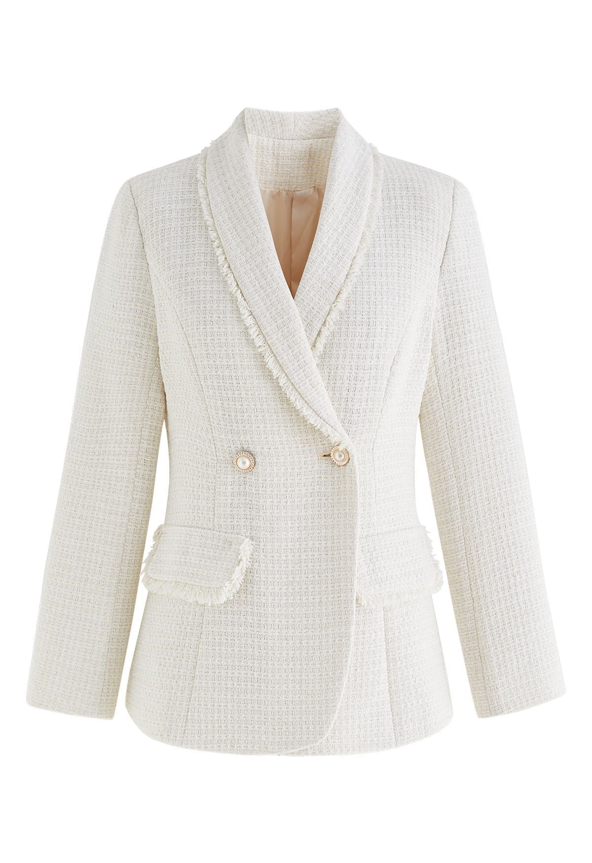 SHAWL COLLAR FRINGED EDGE TWEED BLAZER
