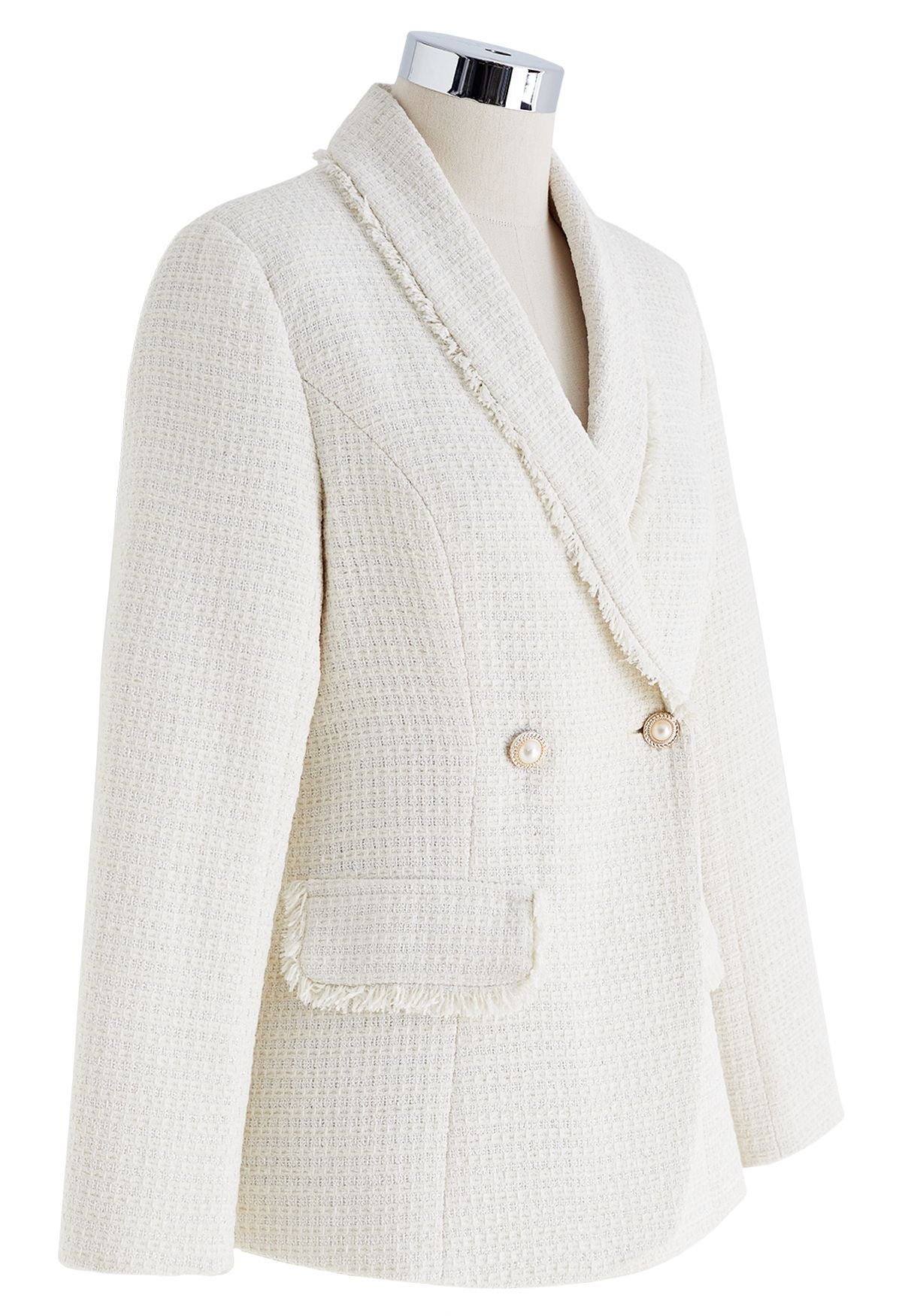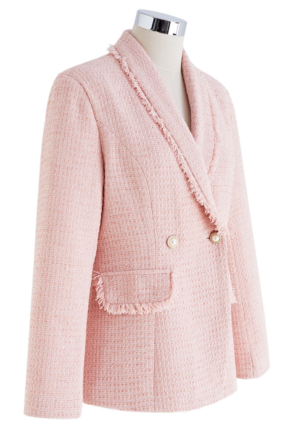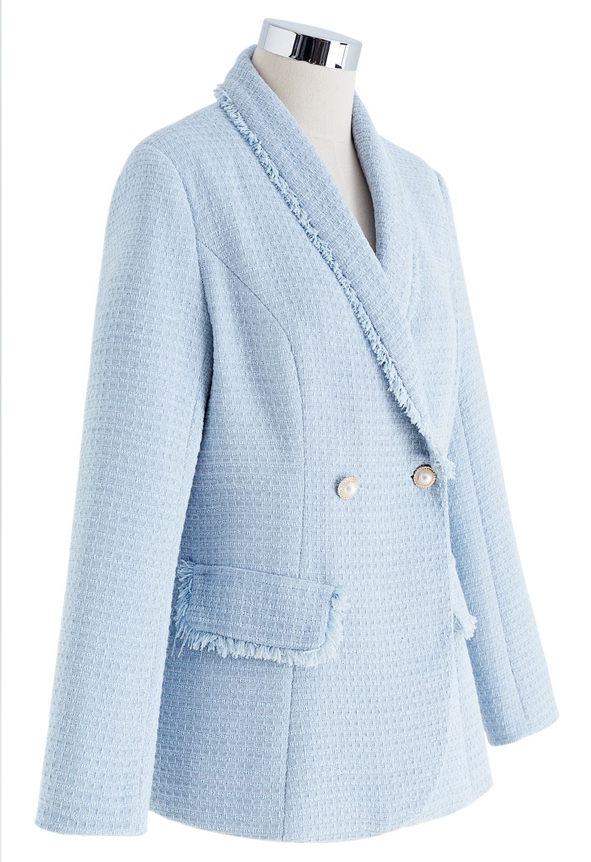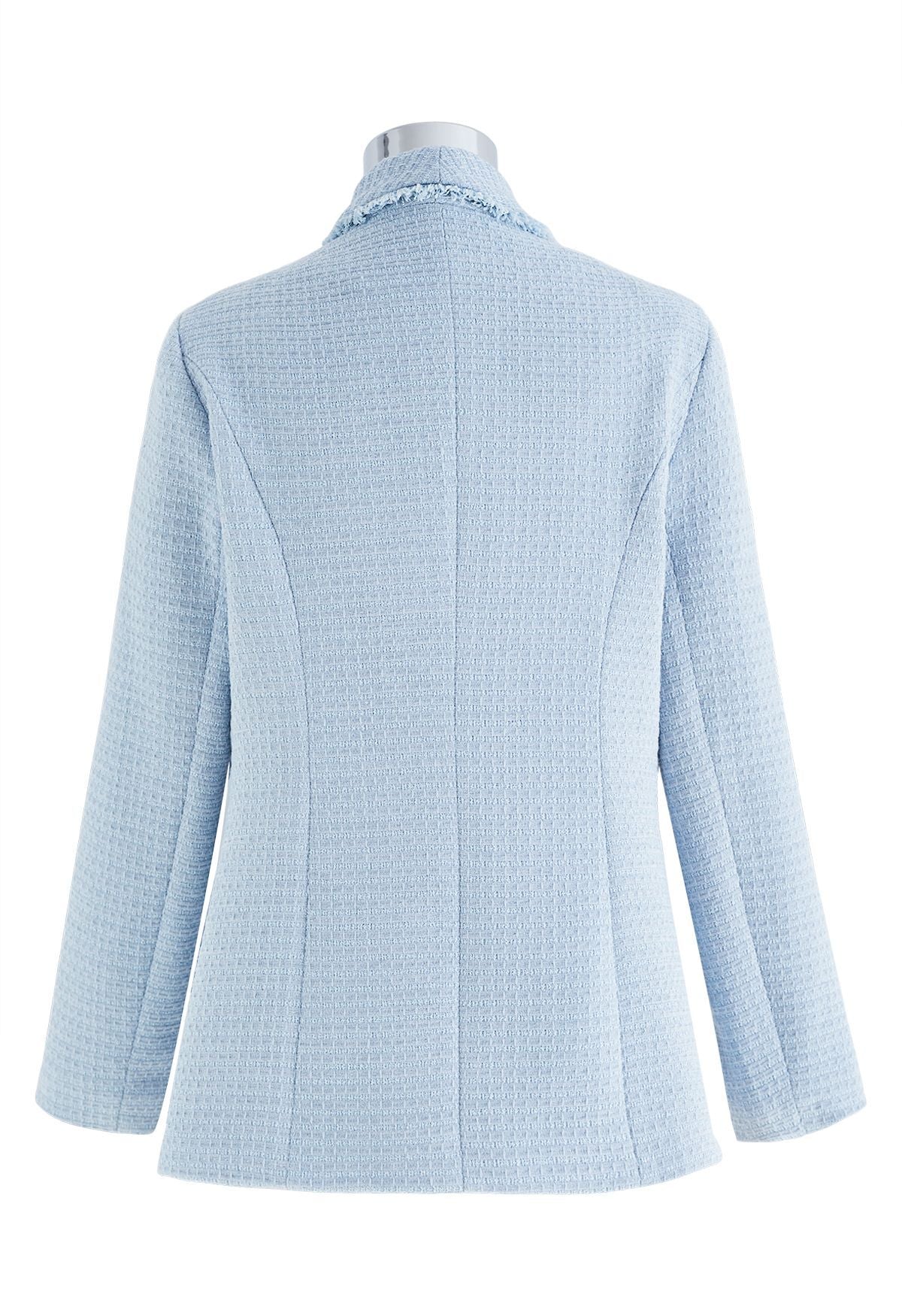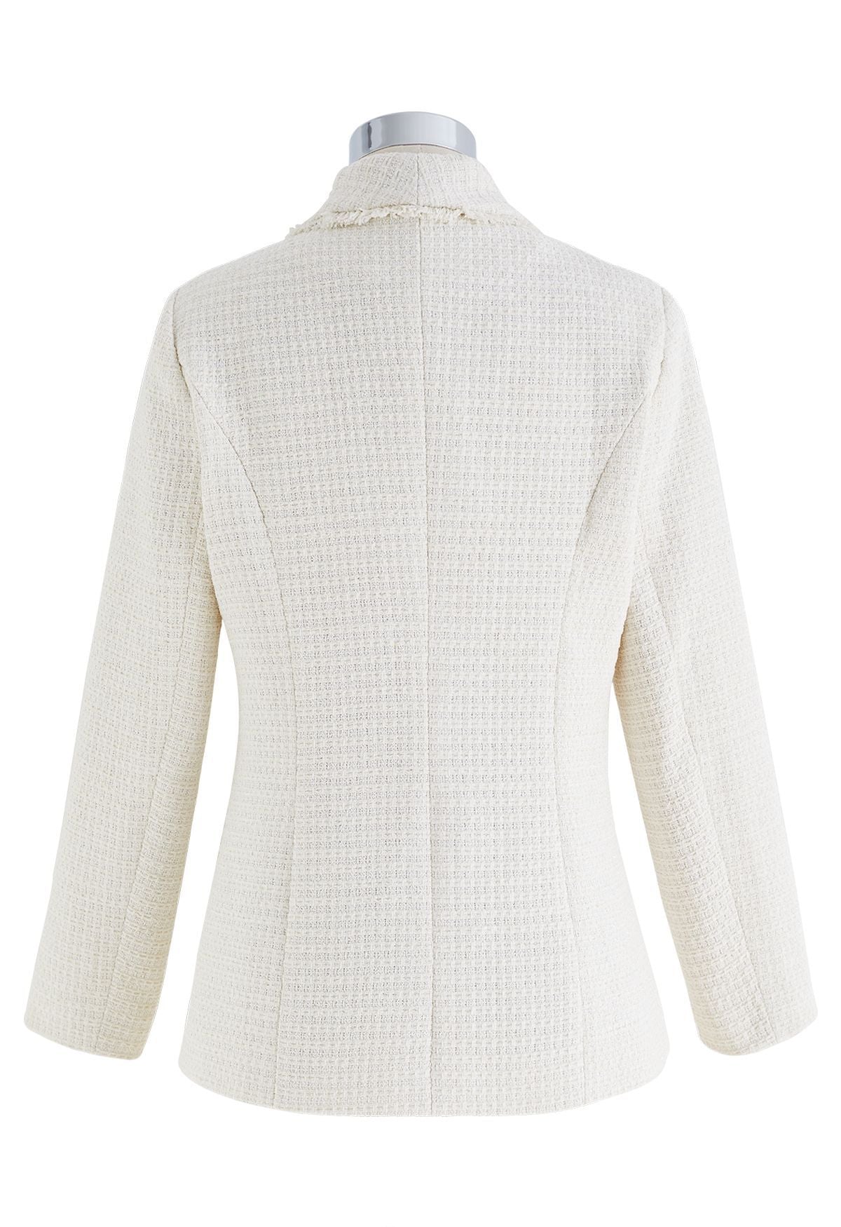 If you never have the right blazer to complete your business casual outfits and keep you warm, we have just the piece for you. Made of tweed fabric with fringed trimmed, it pairs wonderfully with silky blouses and suit pants. Just top the whole outfit off with a pair of professional mules and you're office ready!