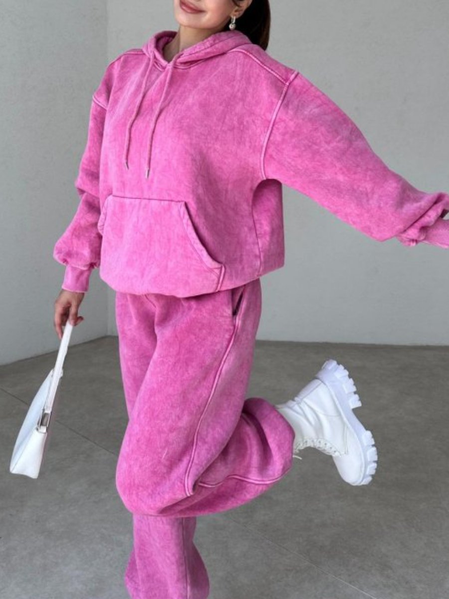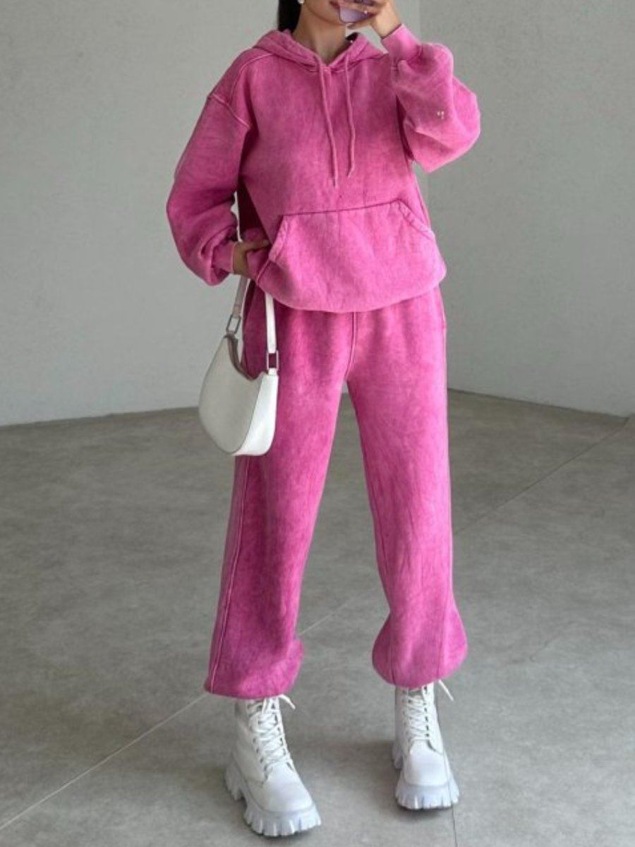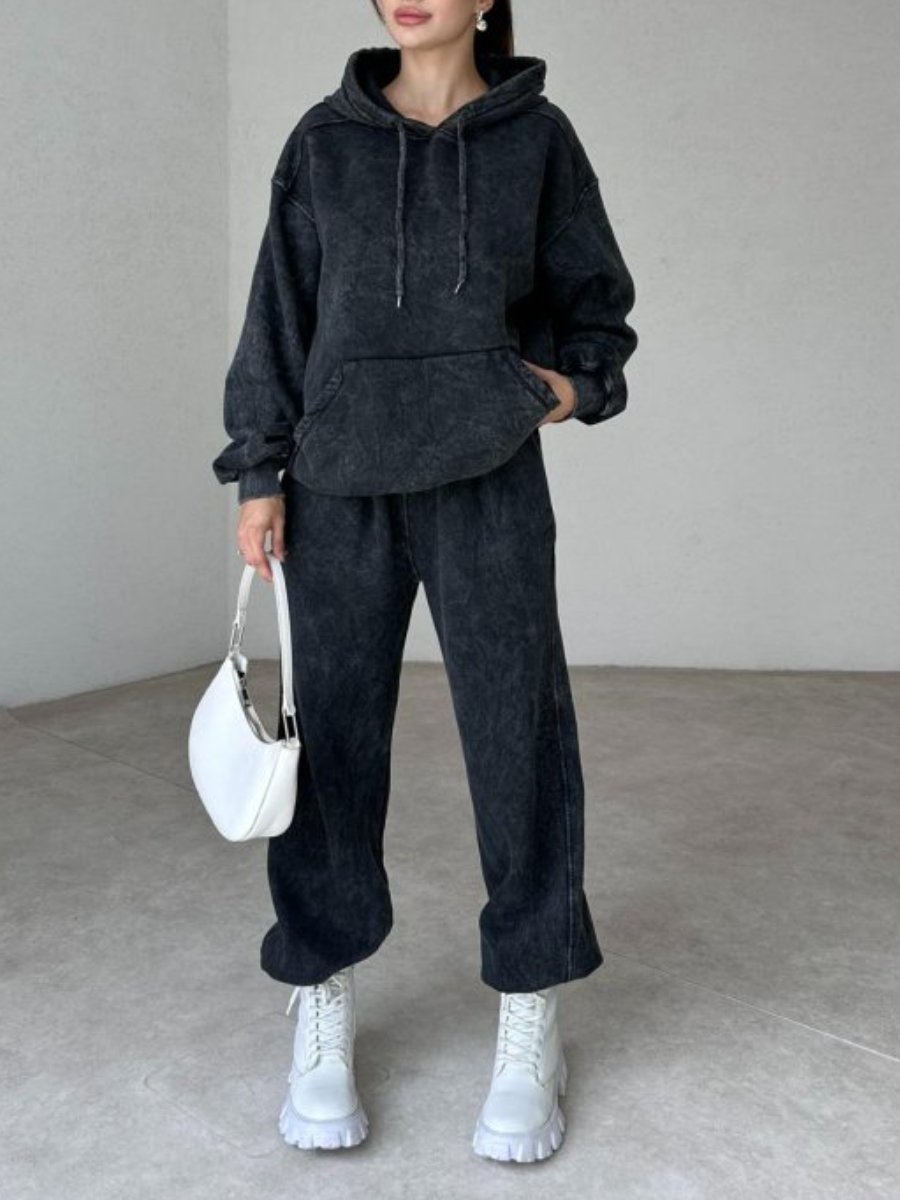 Stylish Retro Loose Hoodie Sports Two-Piece Set