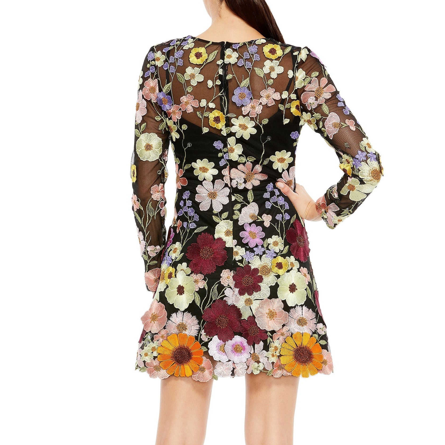 This Garden Party Dress is a beautiful choice for your next event. Crafted from lightweight woven material, the sleeveless high neck mini features 3D floral embroidering, a full lining and invisible zipper and button closure at the back for a comfortable and secure fit. Non-sheer for effortless wear.