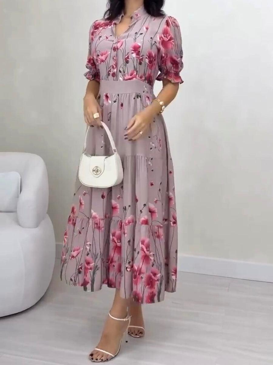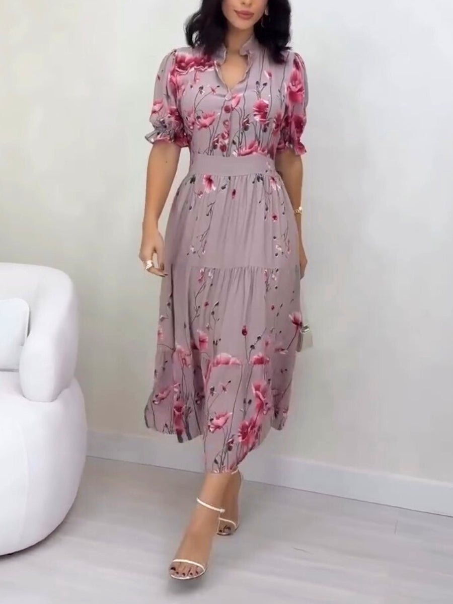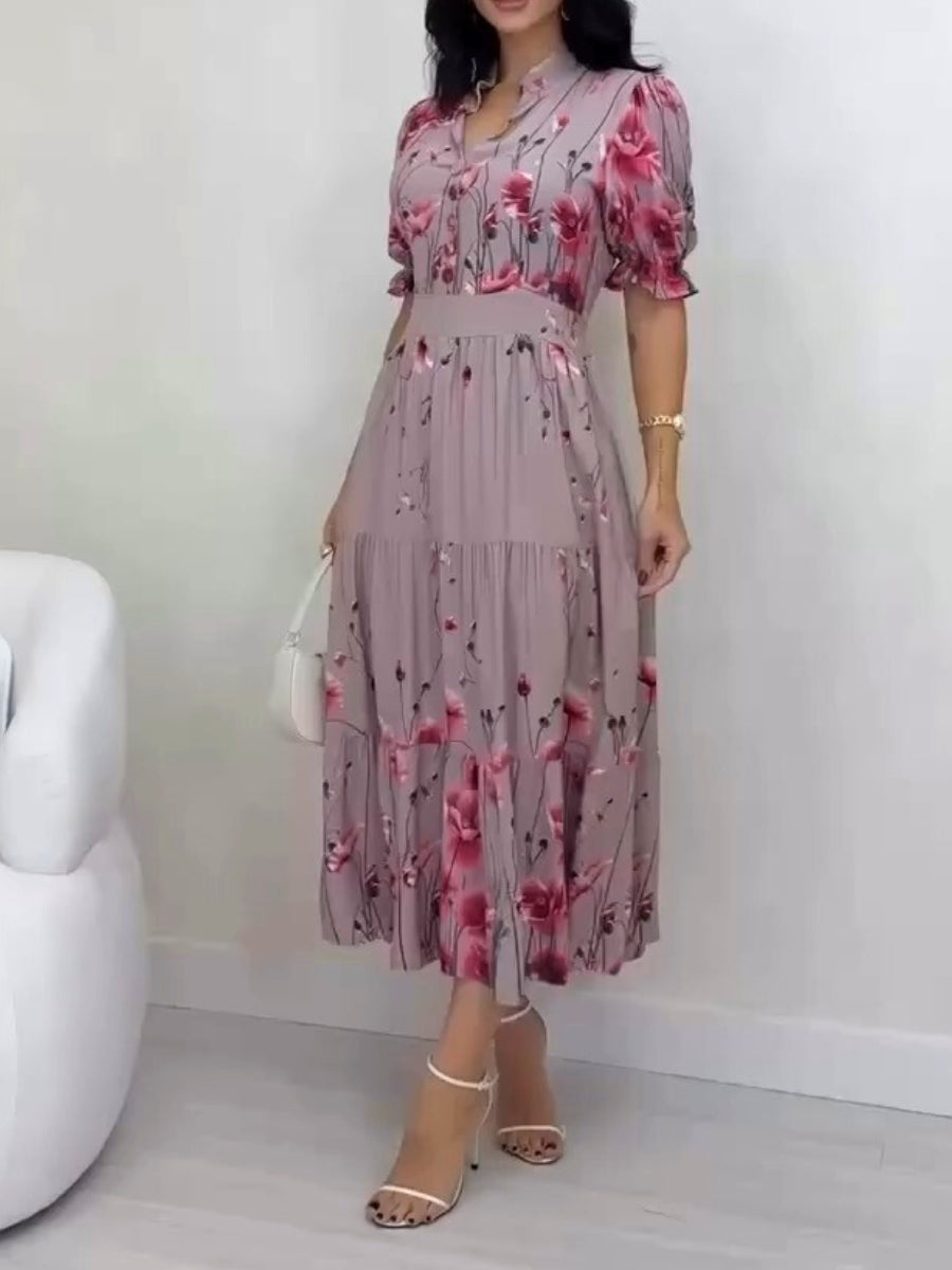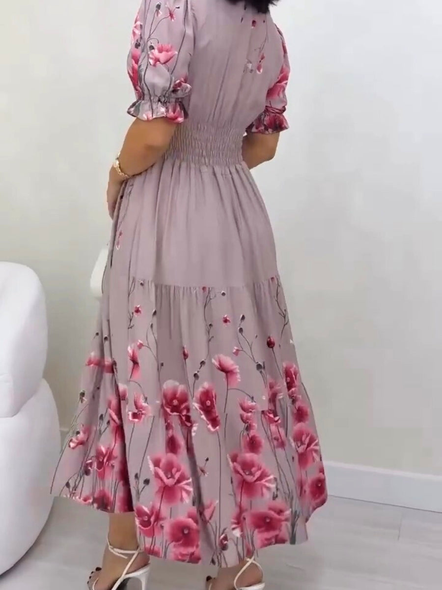 V-Neck Wrapover Floral Print Short Sleeve Summer Dress