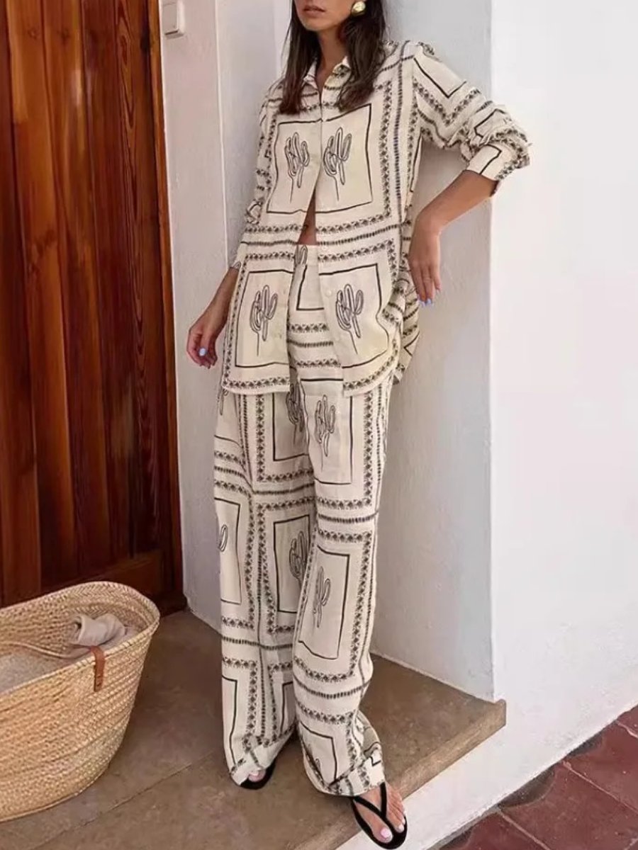 Women's Autumn High Waist Breathable Printed Two-Piece Set